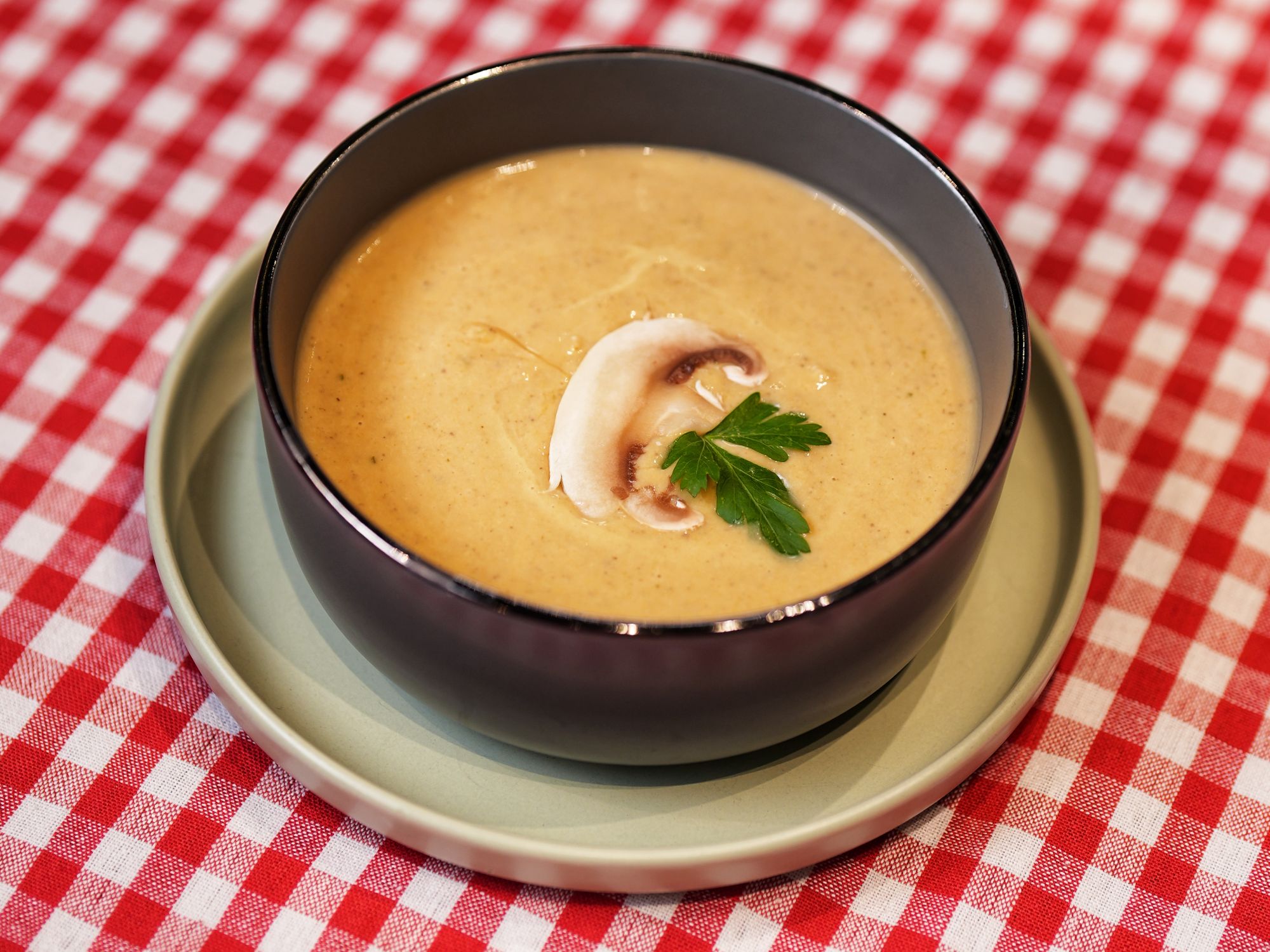 ciuperci 100g, bacon 60g, usturoi 10g, pătrunjel 20g -